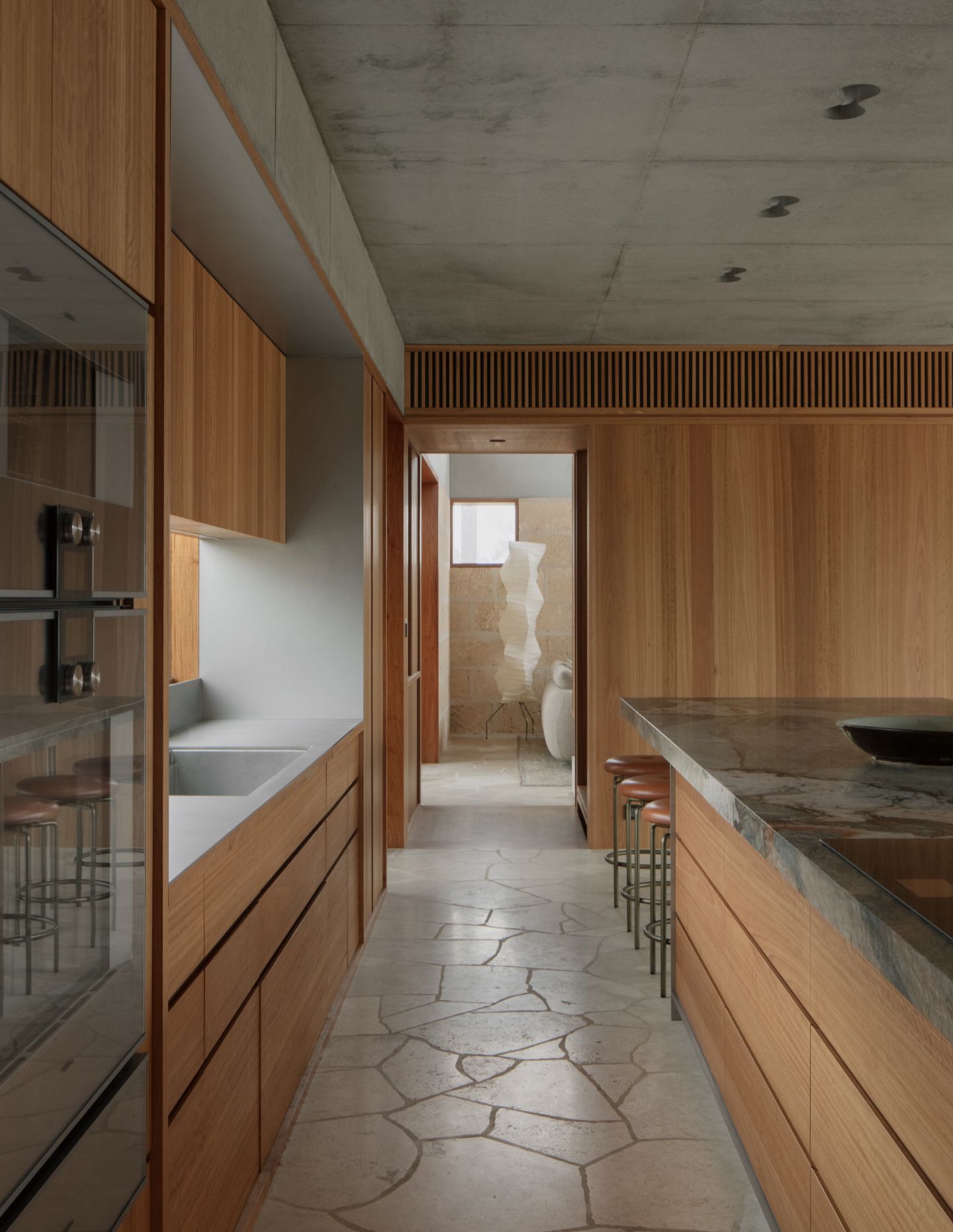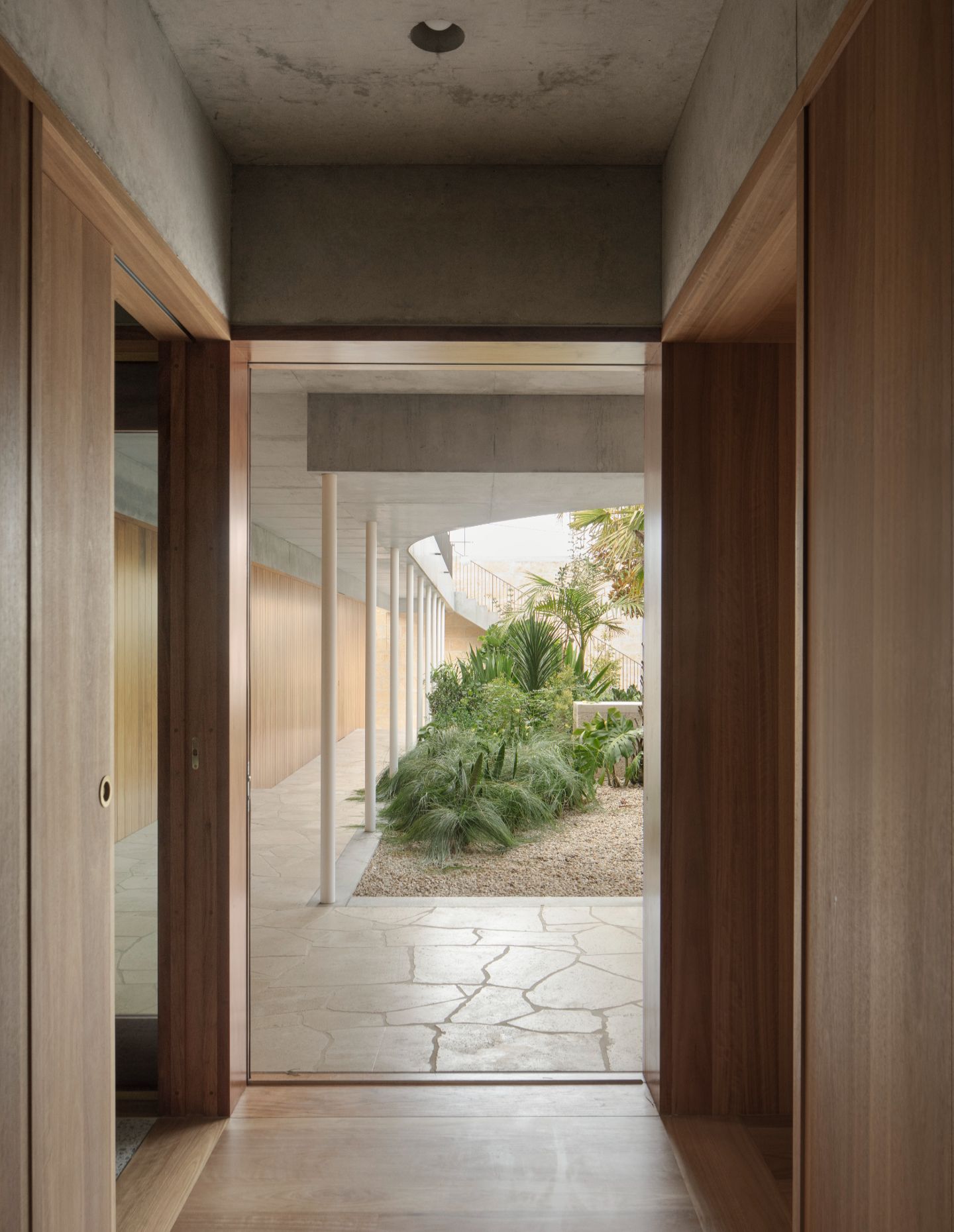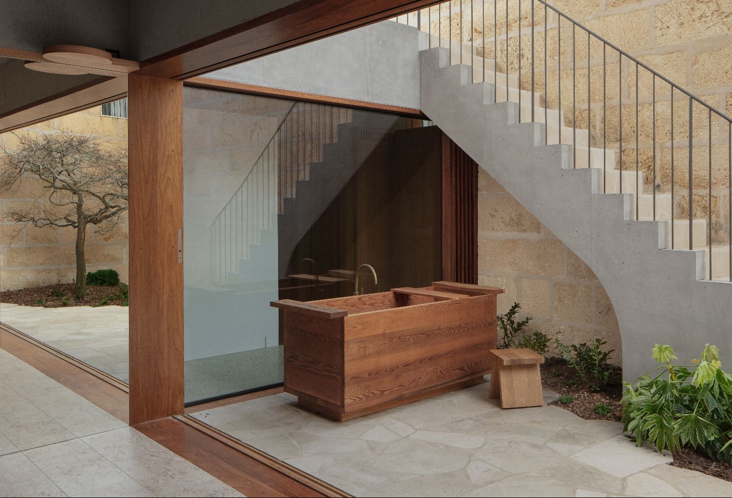 This inward-facing character – modest from the outside, luxurious within – is one clue into some of Parsons’ sources of inspiration. It’s an expression of privacy that immediately evokes something of old, dense urban areas in West Asia, and the architect references an ancient walled garden ideal. Indeed, this is a project rich in wide-ranging cultural references, as well as direct architectural precedents such as Jørn Utzon’s Can Lis in Mallorca.