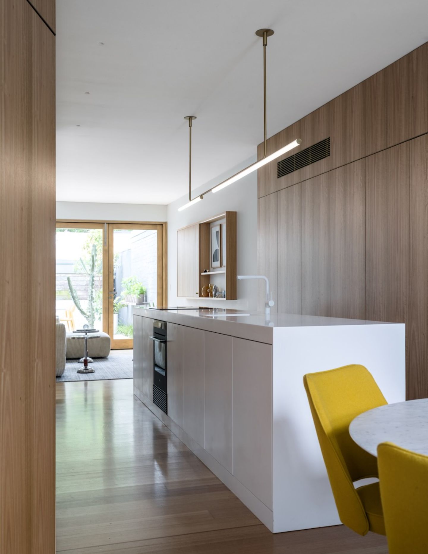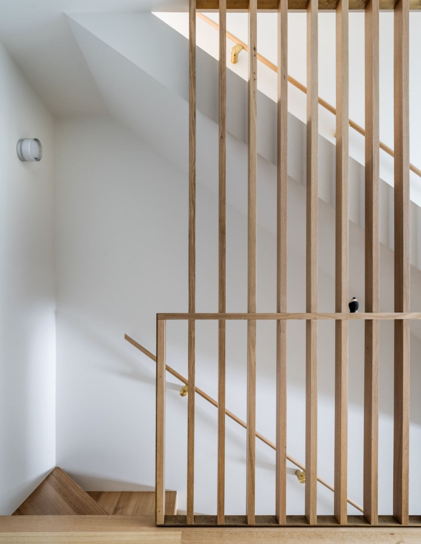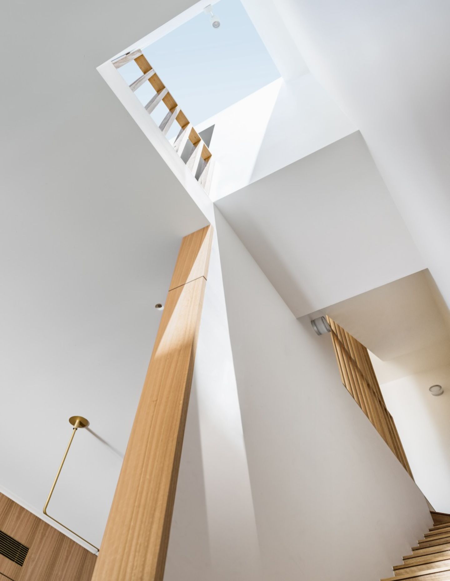 Skylights, voids and open balustrades allow light to move vertically, connecting levels and softening the depth of the plan. What might otherwise feel compressed instead opens gradually, as light filters through the house at different intensities throughout the day.