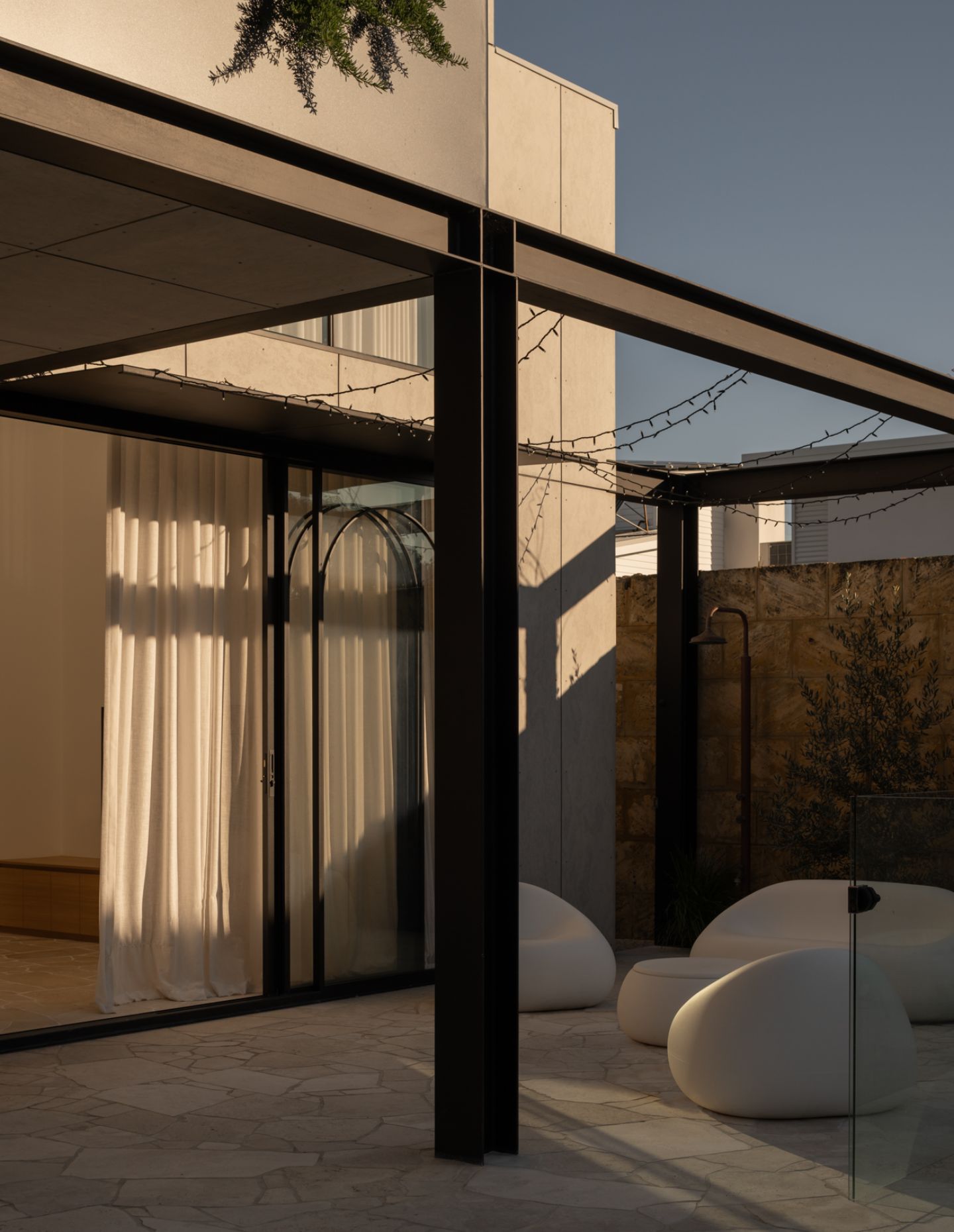 A rooftop terrace, carefully designed within the existing roof structure to meet heritage overlays, provides a discreet retreat with views across Fremantle Port and cascading greenery – perfect for afternoon drinks.