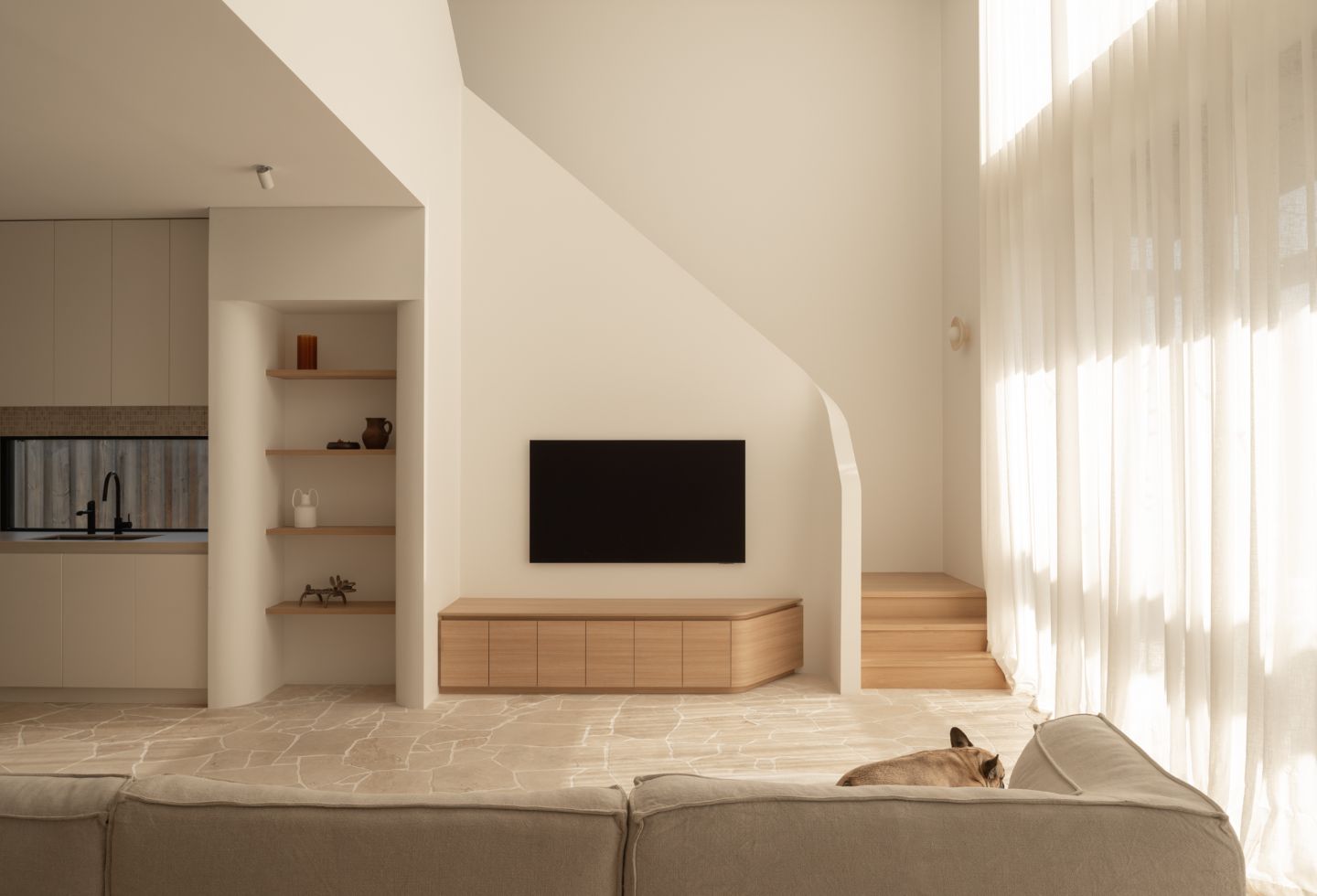 In design, the challenge was not so much the house, but the 400-square-metre site itself. It features a 5 metre rise from street level to the rear, which pitches the house well above the street level. It’s also highly visible along one side, forming part of the heritage overlay.
