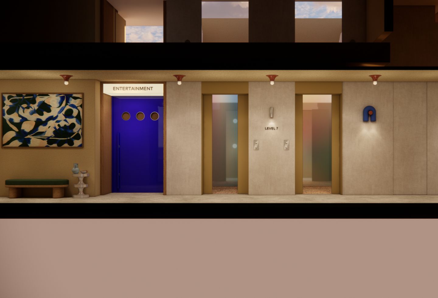Lloyd points to the entertainment quarter as a personal highlight. “The saturated red bar, the deep blue – these are spaces you’d normally seek out as a treat in the city, but it’s right here in the amenity.”