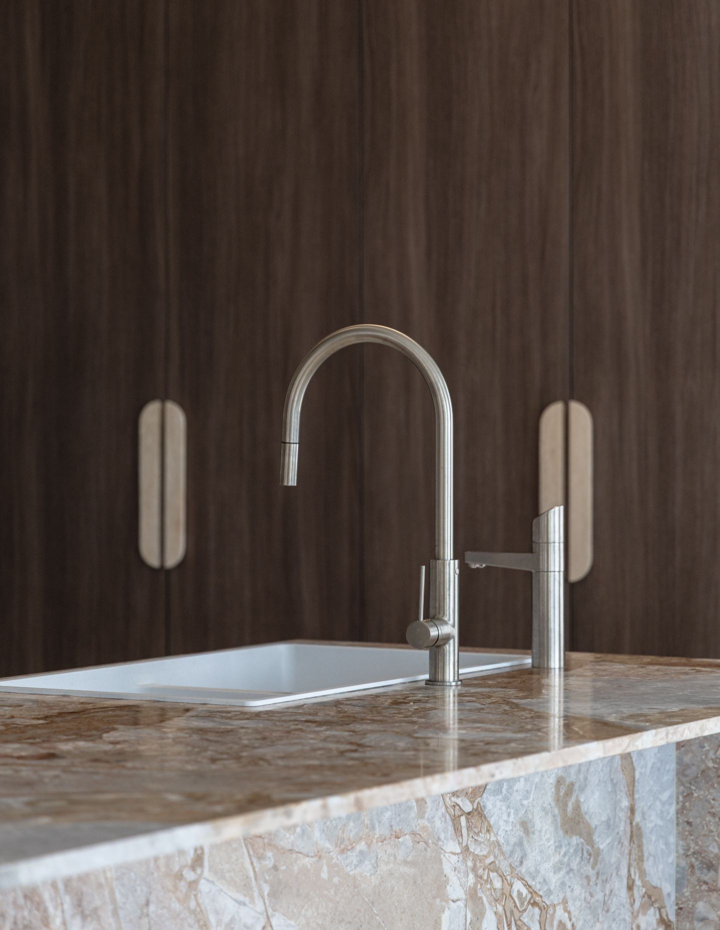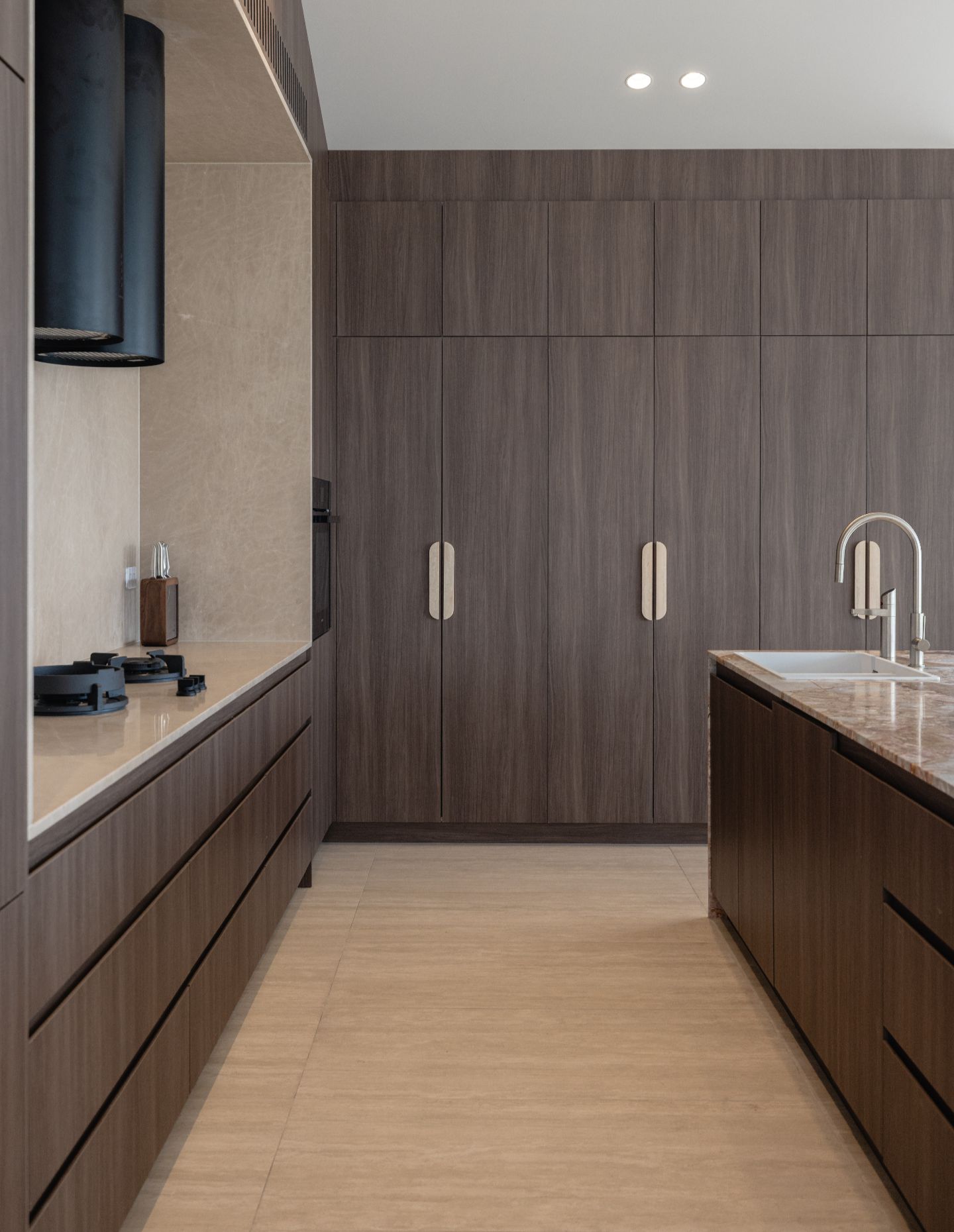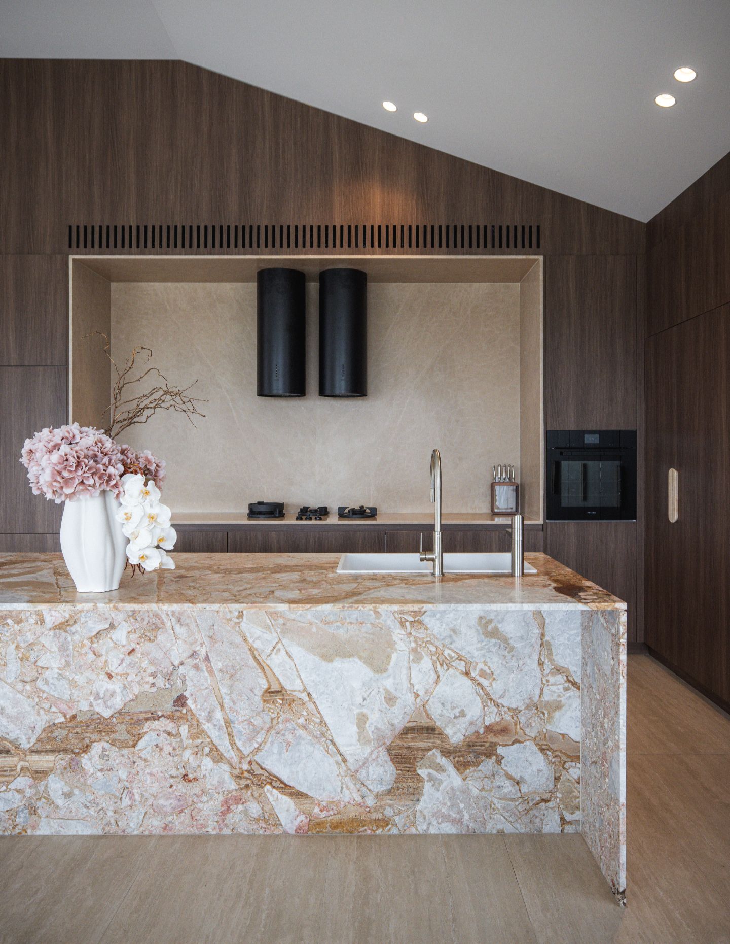 Our favourite moments are the quieter yet impactful ones – where material, light and proportion come together naturally. The kitchen sits at the heart of the home, warm and inviting, while the powder room offers a softer, more intimate experience.