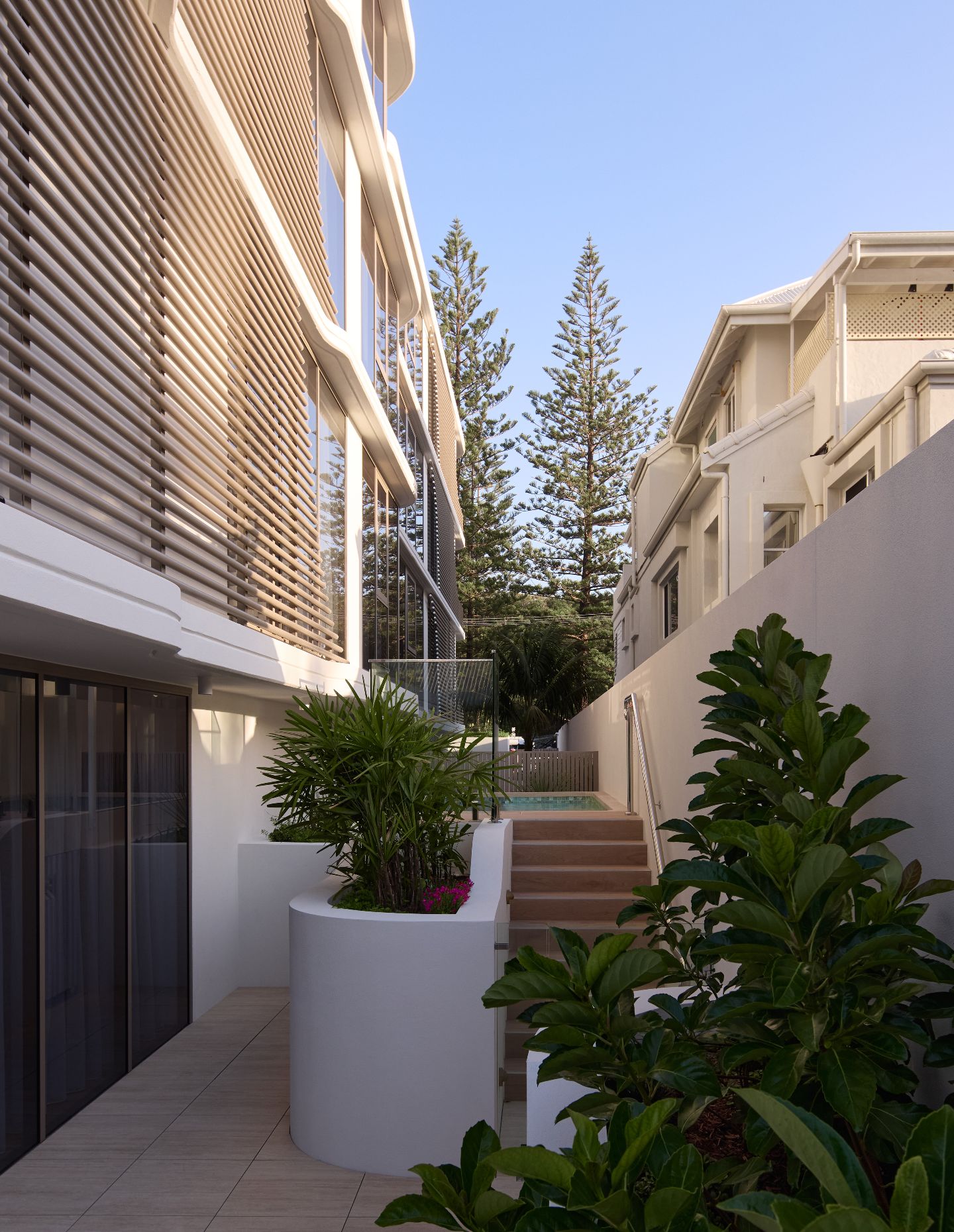 That meant working within the suburb’s height controls and taking the modest beachside scale of the 1970s and 80s as a genuine reference point. The market reinforced that thinking. There’s strong demand from owner-occupiers and downsizers who want quality, privacy and neighbourhood fit — and who aren’t finding it in the prevailing apartment product.