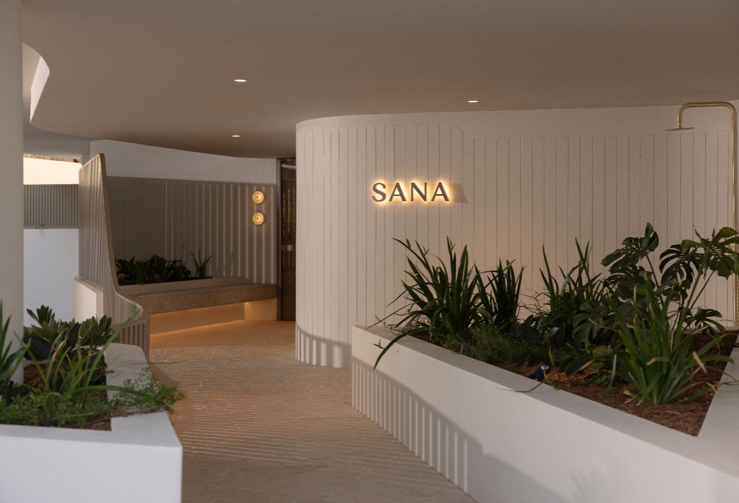 At ground level, a planted undercroft creates a cooler, more porous threshold — a quiet counterpoint to the sealed lobbies typical of larger developments.