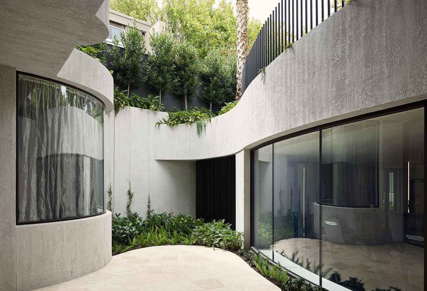 Positioned within Brighton’s Golden Mile and only 200 metres from the beach, the site offered both opportunity and complexity. The design needed to balance the southern street frontage with northern solar access, ensuring light-filled living zones connected directly to the garden and terrace. Biophilic principles guided the approach, with framed views and natural elements embedded throughout. A lower courtyard brings daylight into the basement wellness and media spaces, while the rooftop captures city and bay views, extending the home’s living experience outdoors.