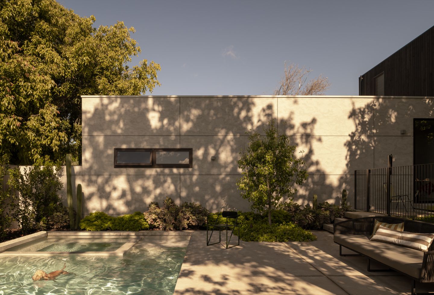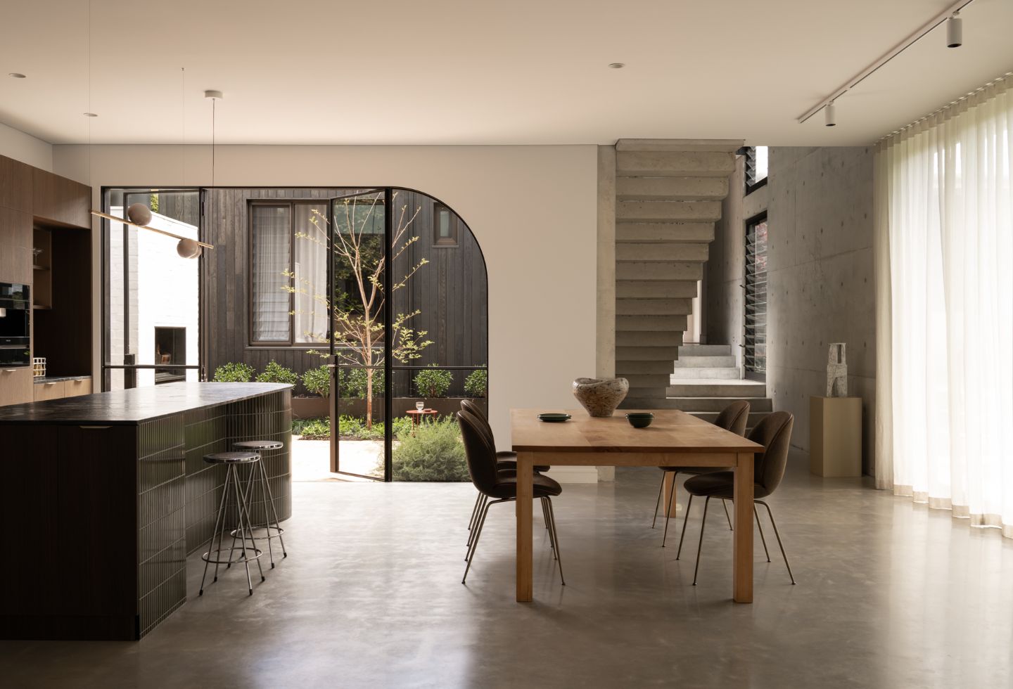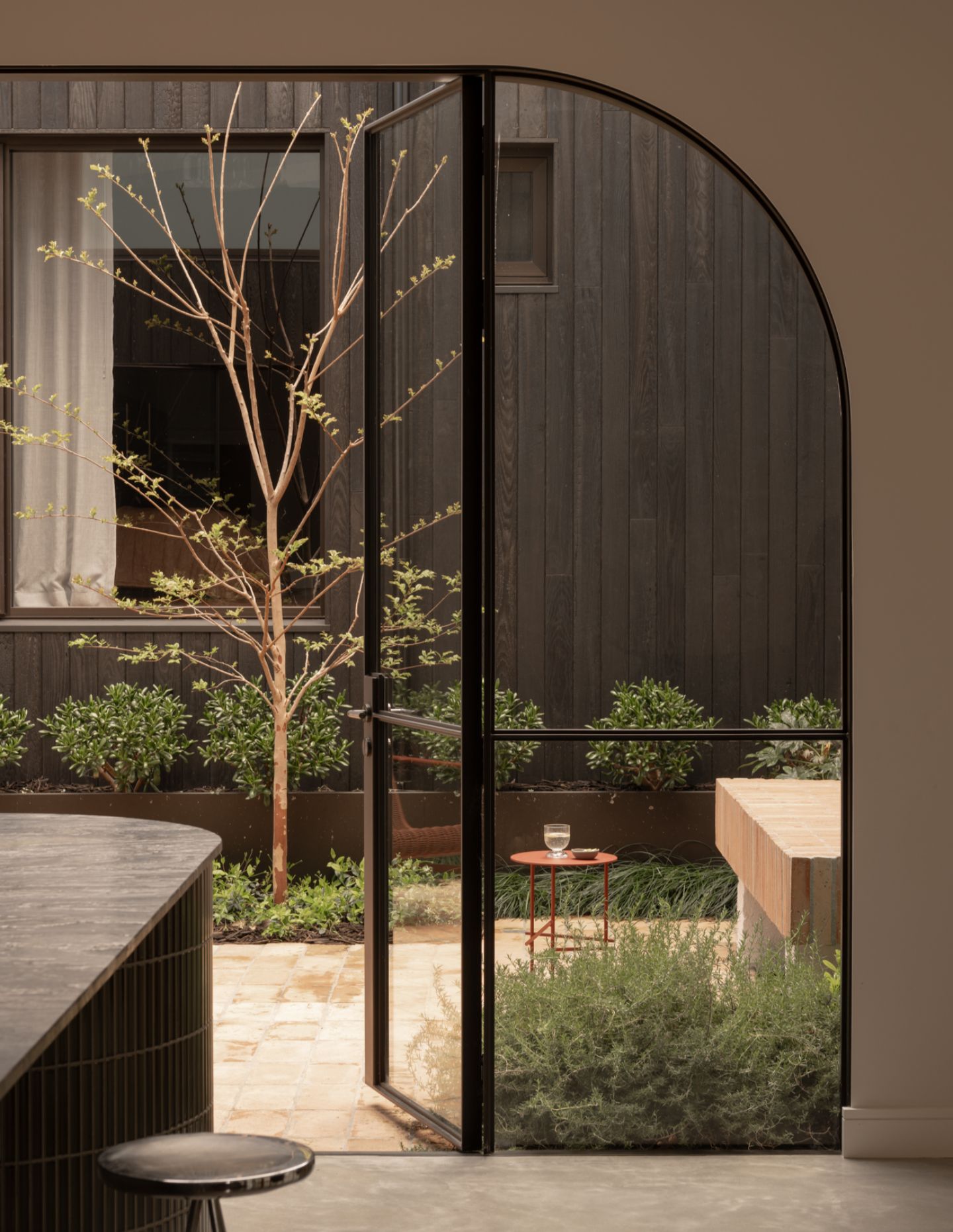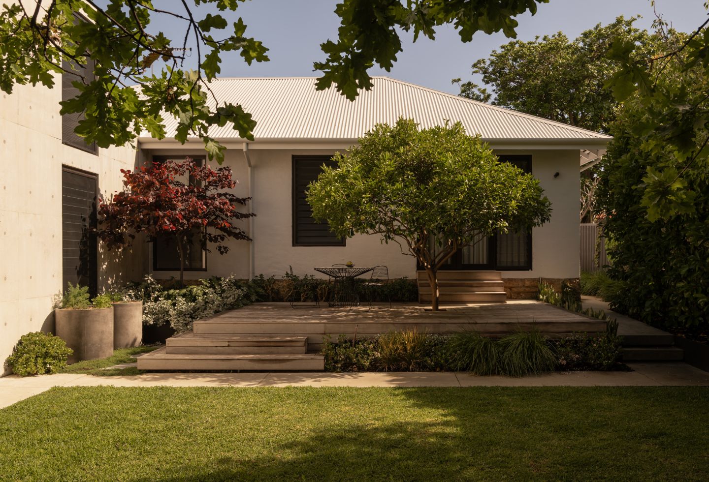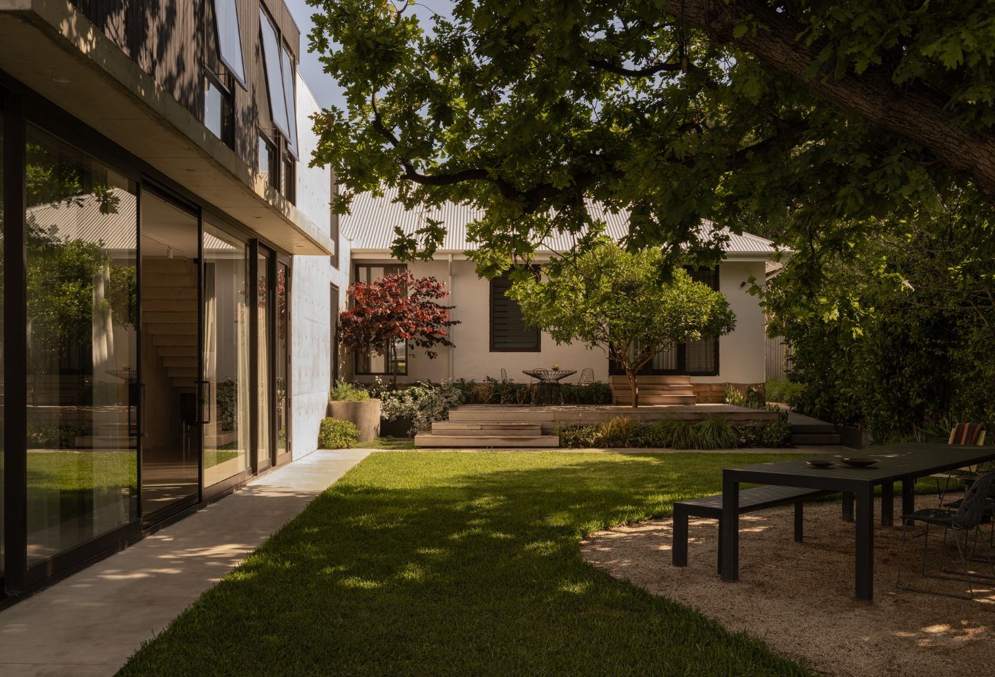 The light in the kitchen and living spaces, coming in through the north-facing courtyard, is another highlight. And seeing the new addition sitting within the established garden — with the existing tree still dominating the site — is something that feels particularly rewarding.