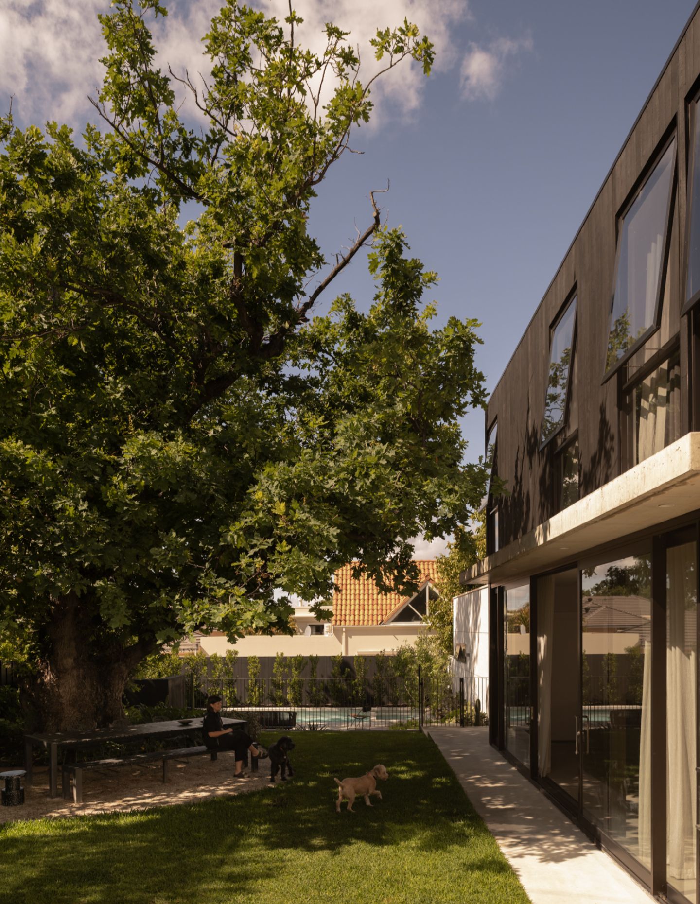 Against this context, Shou Sugi Ban House was designed to be sensitive to its neighbourhood. The existing home and established trees were maintained, with only a hint of the new build visible from the street.