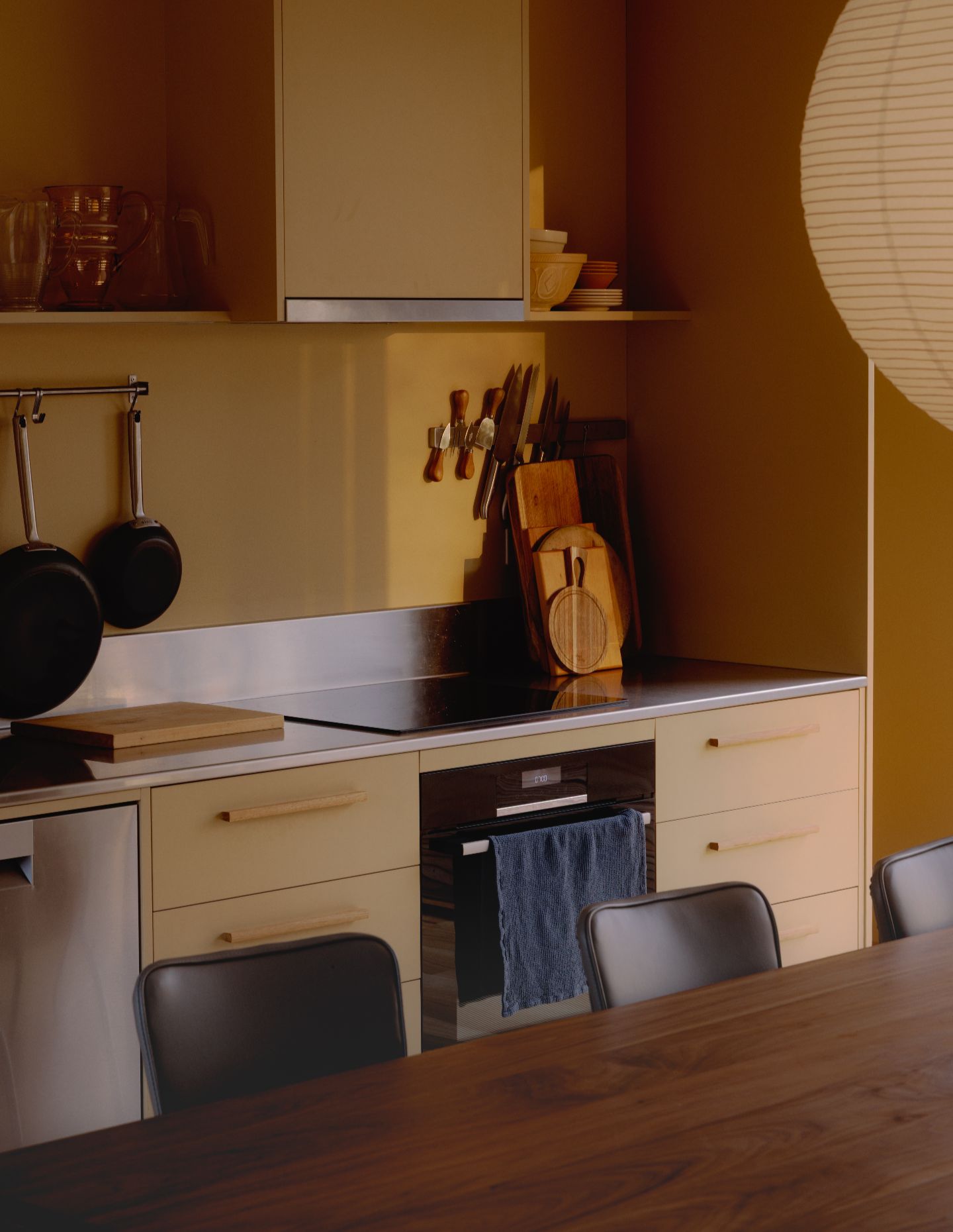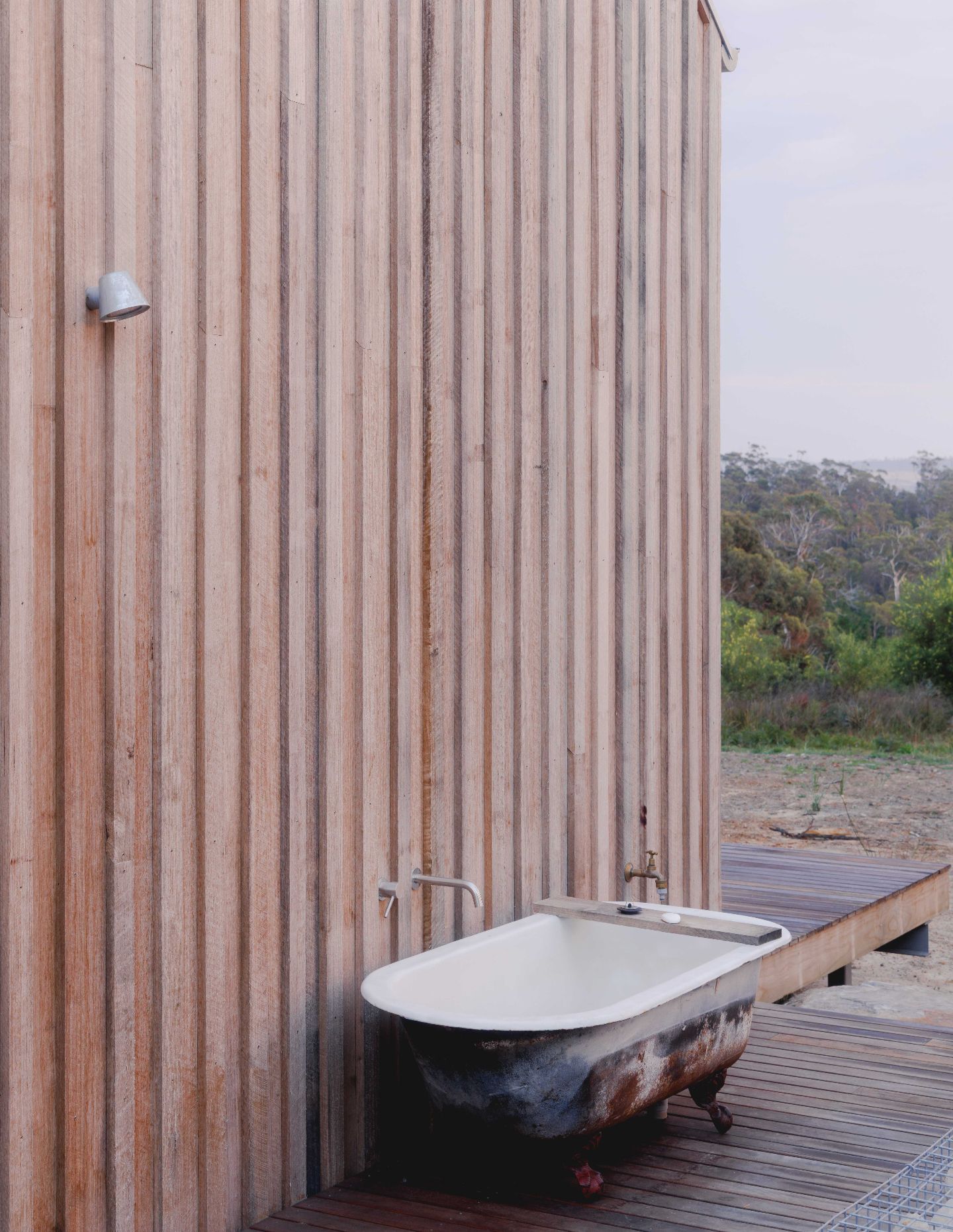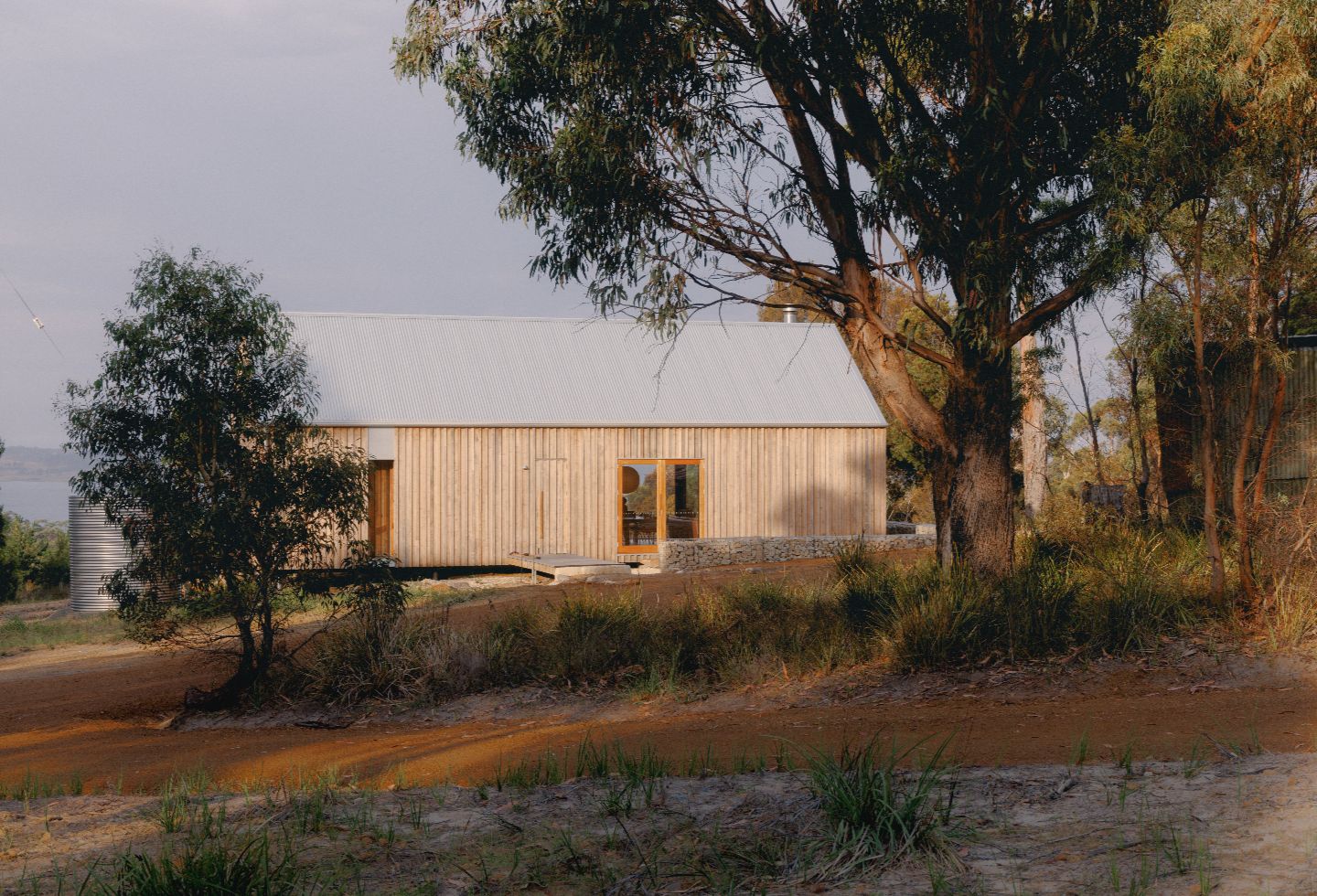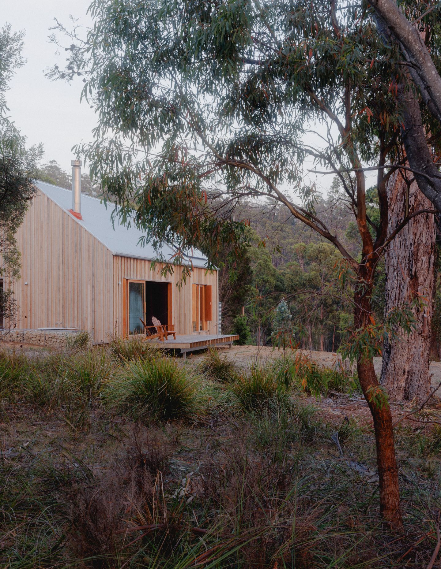 The exterior’s locally sourced blue gum board-and-batten cladding was chosen for its natural durability and soft tones as well as the reuse of offcuts to minimise construction waste. “After rain, the blue gum deepens in colour, and over time it will weather gracefully, further blending the house into its surrounding landscape,” shares Forbes-Smith.