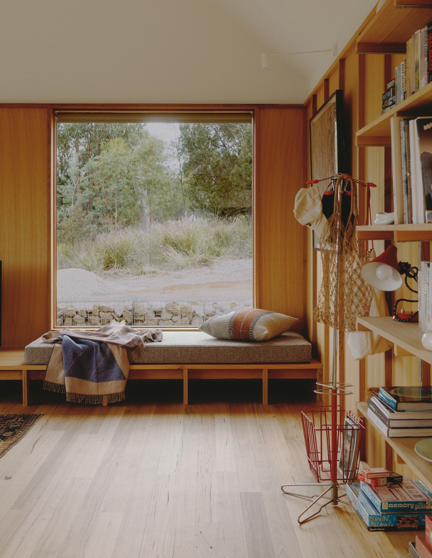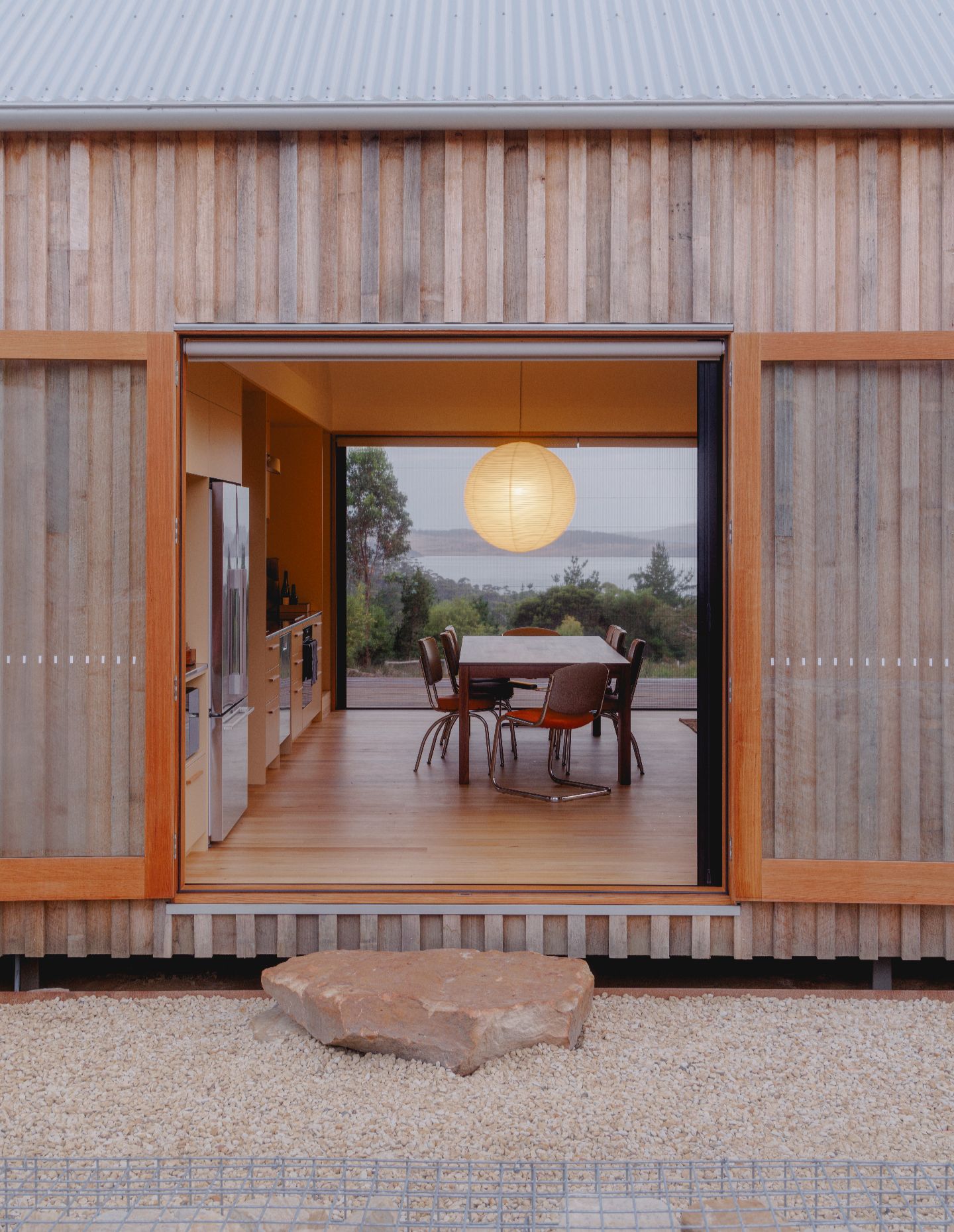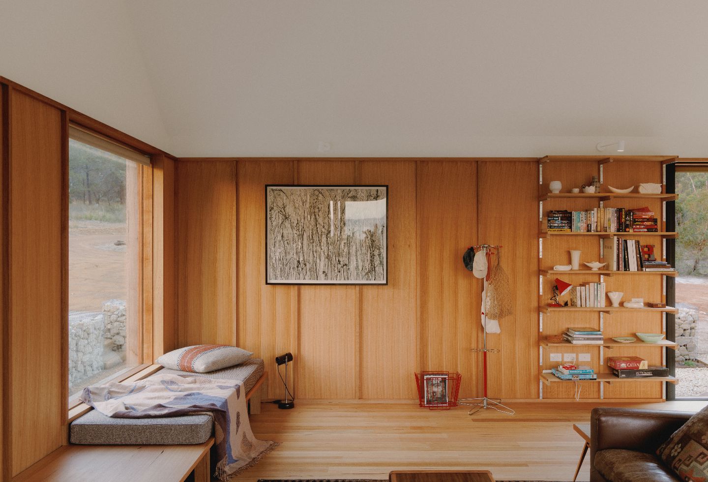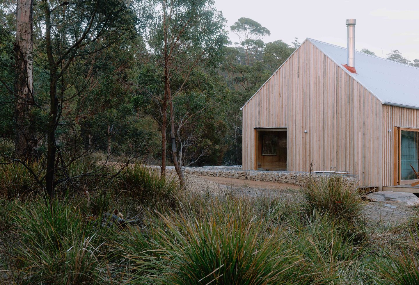 “When the rear French doors are opened, the space spills out onto a large rock that has quietly become a seat,” says Forbes-Smith. “From here, I often notice wallabies moving through the long grasses behind the old shed – small, unplanned moments that anchor the house to its setting.”