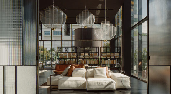 After slipping past the original 1920s façade you enter the lobby at ground floor. Described as ‘Industrial Glam’ this floor is the design inspiration of Chris Lee and Cara Ang of Asylum. The space explores the new-meets-old nature of the new hotel in the building’s historic skin – a Frank Gehry sofa juxtaposed with a montage of vintage print ads for example.